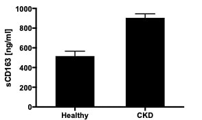 Plasma was isolated from blood drawn in EDTA tubes from HIV+/ART and HIV- healthy controls. sCD163 was measured using the Quantikine elisa kit for human sCD163 (cat# DC1630) following the protocol supplied in the kit. Plasma samples were diluted 1:10 before use in the assay.