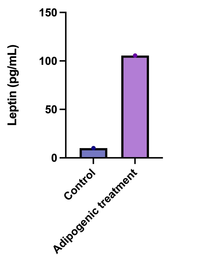 Leptin is a product of the mouse obese gene. Mice with mutations in the obese gene that block the synthesis of leptin are obese and diabetic, and have reduced activity, metabolism, and body temperature. Rat leptin shares approximately 96% and 82% sequence identity with the mouse and human protein, respectively. The expression of leptin mRNA is restricted to adipose tissue.