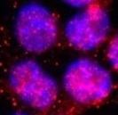 Alpha Actinin 2 in C2C12 mouse myoblast cell line. Alpha Actinin 2 was detected in immersion fixed C2C12 mouse myoblast cell line using Rabbit Anti-Human/Mouse/Rat alpha Actinin 2 Monoclonal Antibody (Catalog # MAB9830) at 3 µg/mL for 3 hours at room temperature. Cells were stained using the NorthernLights™ 557-conjugated Anti-Rabbit IgG Secondary Antibody (red; NL004) and counterstained with DAPI (blue). Specific staining was localized to cytoplasm and nuclei. View our protocol for Fluorescent ICC Staining of Cells on Coverslips.