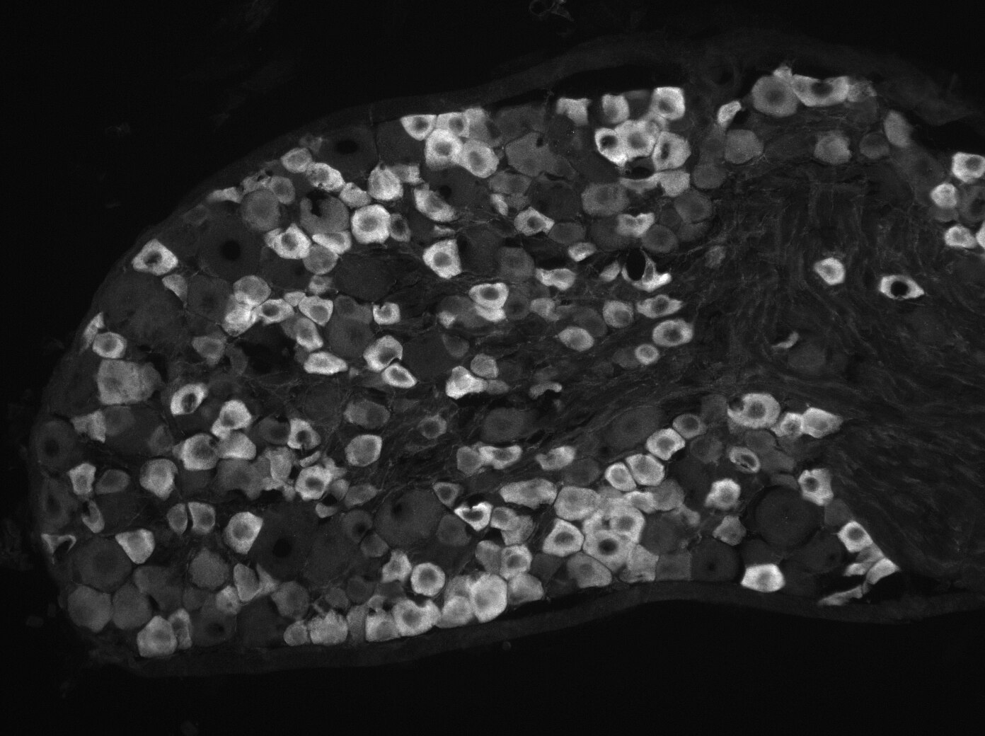 - Antibody diluted in above 1:400 and mouse dorsal root ganglia sections incubated overnight at 4oC.