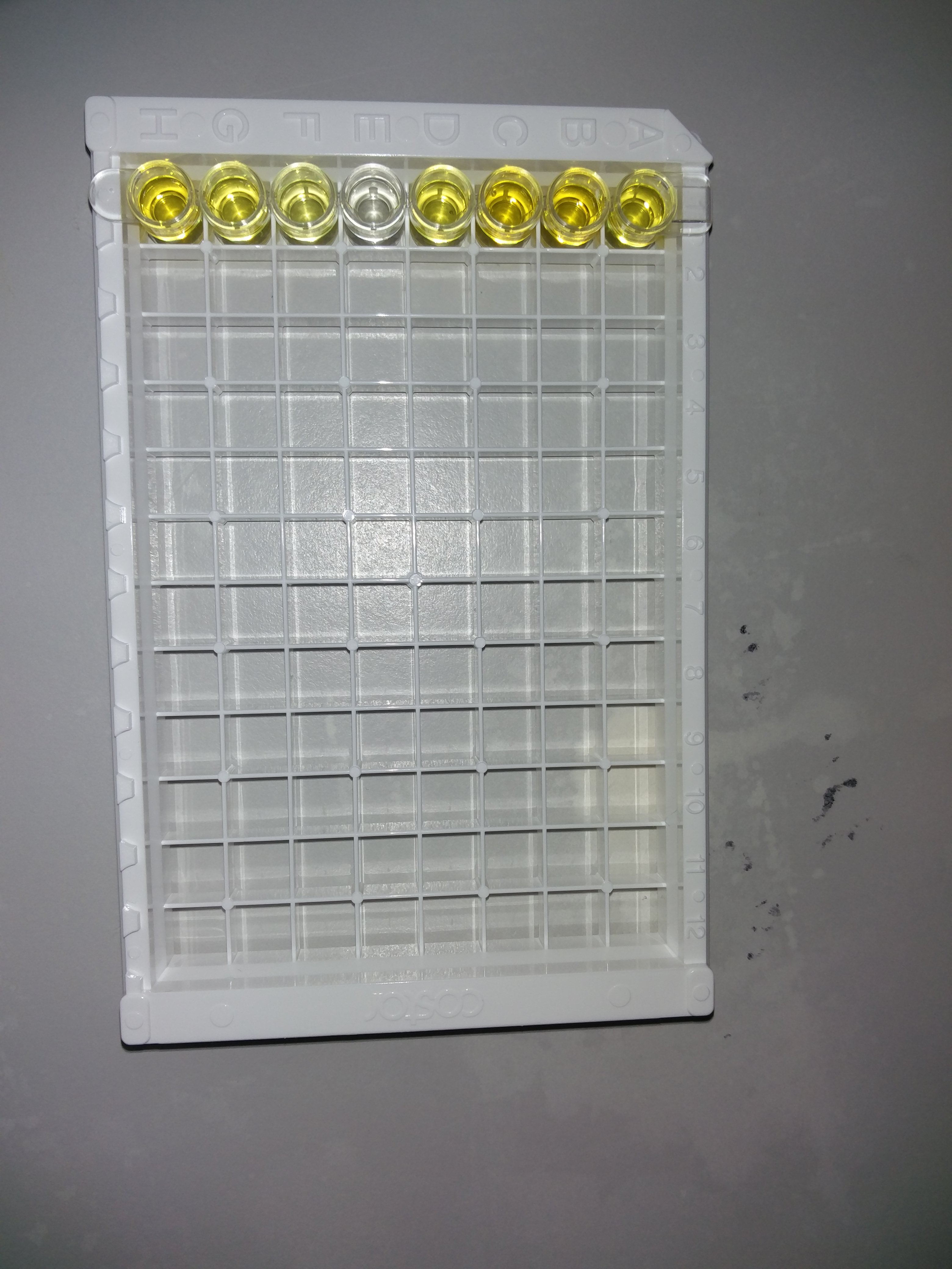 12.   Add 100 µL Substrate Solution to each well. Incubate at room temperature for 30 minutes. PROTECT FROM LIGHT.