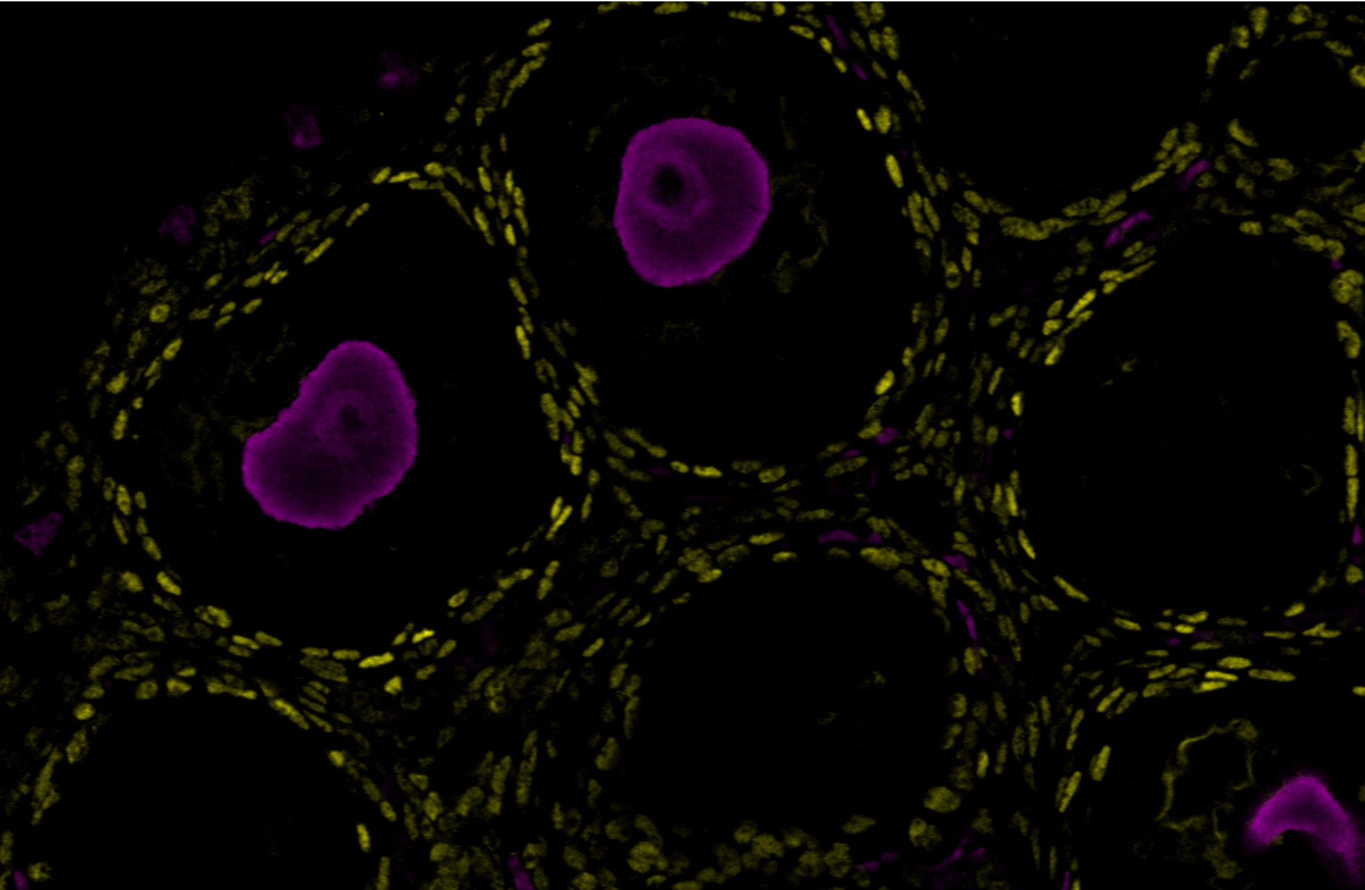 The antibody was tested on a paraffin-embedded section of a mouse P14 ovary, with successful staining observed at a dilution of 1:200. Yellow (Nr2F2), Magenta (Stella)
