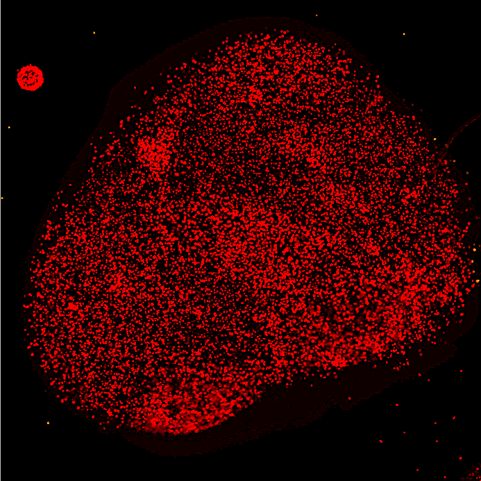 NucleoLIVE™ Non-Toxic Dye Application. NucleoLIVE™ staining of 3D brain organoids under hypoxic conditions. Live imaging shows deep penetration and uniform nuclear staining (1:500, red), demonstrating suitability for complex 3D models.