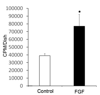Recombinant Human FGF basic/FGF2/bFGF (157 aa) (Catalog # 234-FSE) stimulates cell proliferation of the NR6R‑3T3 mouse fibroblast cell line. The ED50 for this effect is 0.5-2.5 ng/mL.