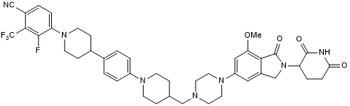 Chemical Name: 4-[4-[4-[4-[[4-[2-(2,6-Dioxo-3-piperidinyl)-2,3-dihydro-7-methoxy-1-oxo-1H-isoindol-5-yl]-1-piperazinyl]methyl]-1-piperidinyl]phenyl]-1-piperidinyl]-3-fluoro-2-(trifluoromethyl)benzonitrile