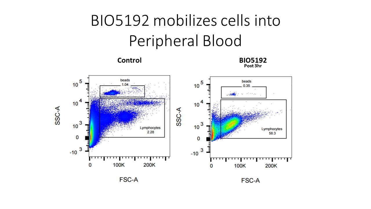 BIO5192, a small molecule inhibitor of VLA-4, mobilizes hematopoietic stem and progenitor cells.