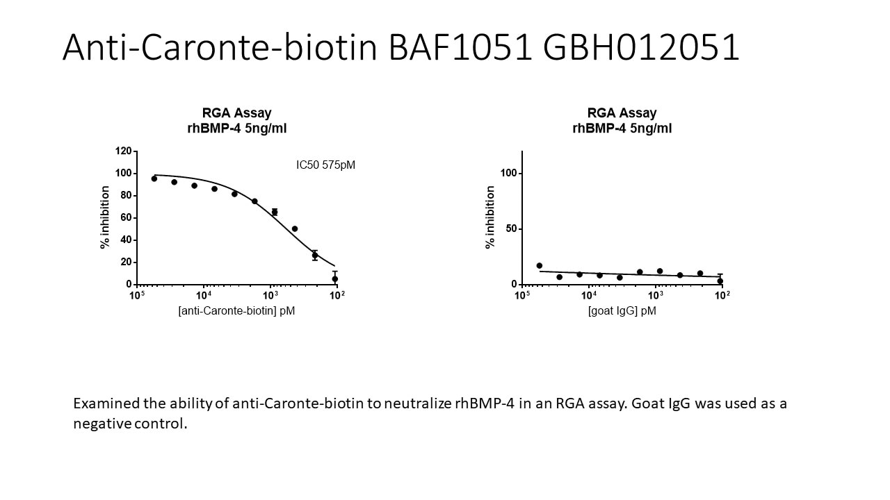 Chicken Caronte, the ortholog of mammalian Cerberus, is a member of the Cerberus/DAN family of secreted glycoproteins. There are at least 5 Dan Domain (DAND) family members including DAN (DAND1), Gremlin/Drm (DAND2), PRDC (Protein Related to Dan and Cerberus; DAND3), Cerberus (DAND4), and Coco (DAND5). Caronte is expressed in the left paraxial mesoderm and is the molecule responsible for transducing left-sided positional information from the node to the periphery of the lateral plate mesoderm (LPM) during chicken embryonic development. Caronte functions as a BMP antagonist, inducing Nodal and downstream genes in the LPM by interfering with the repressive activity of bilaterally-produced BMPs. In addition, antagonism of BMPs by Caronte induces the expression of the Lefty gene in the midline. Caronte binds both BMP-4 and BMP-7 in immunoprecipitation experiments.