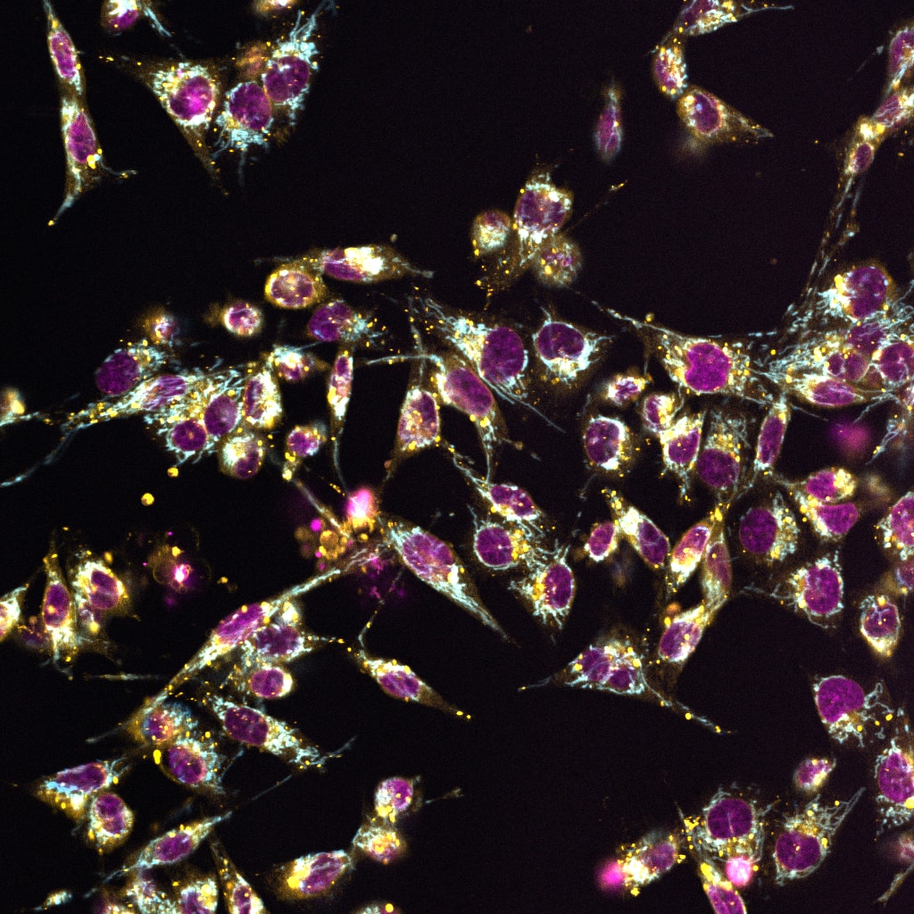 ChromaLIVE™ Deep Red Non-Toxic Dye is a ready-to-use fluorescent probe for long term high content phenotypic screening of live cells. Optimised for live cell painting and morphological profiling in 2D monolayers, 3D spheroids or organoids, the dye provides multi organelle read out for unbiased classification of cell states such as proliferation, stress responses, autophagy, apoptosis or other phenotypic transitions. ChromaLIVE™ Deep Red Non-Toxic Dye can be used with NucleoLIVE™ Non-Toxic Dye (Cat. No. 8935) to get even more insight from live cell painting assays.ChromaLIVE™ is a trademark of Saguaro Biosciences.