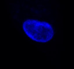 Hoechst was used for nuclear staining. Add stain at 1 ug/mL and incubate cells at room temperature for 10 minutes.