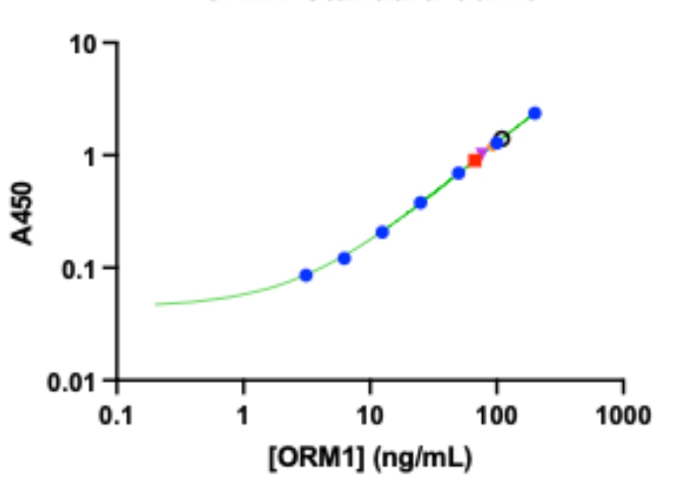 Alpha 1-acid Glycoprotein (AGP), also known as Orosomucoid, is a Lipocalin family acute-phase protein that is produced by the liver in response to inflammation and infection. Its serum concentration can increase 2-5 fold, making it one of the predominant proteins in serum. AGP functions as a carrier protein for many basic and neutral lipophilic drugs including steroid hormones. It can inhibit neutrophil migration in sepsis, exert a protective effect in severe bacterial infection, and inhibit platelet aggregation. The glycosylation pattern of alpha 1-Acid Glycoprotein influences its anti-inflammatory properties and is associated with various pathophysiological states.