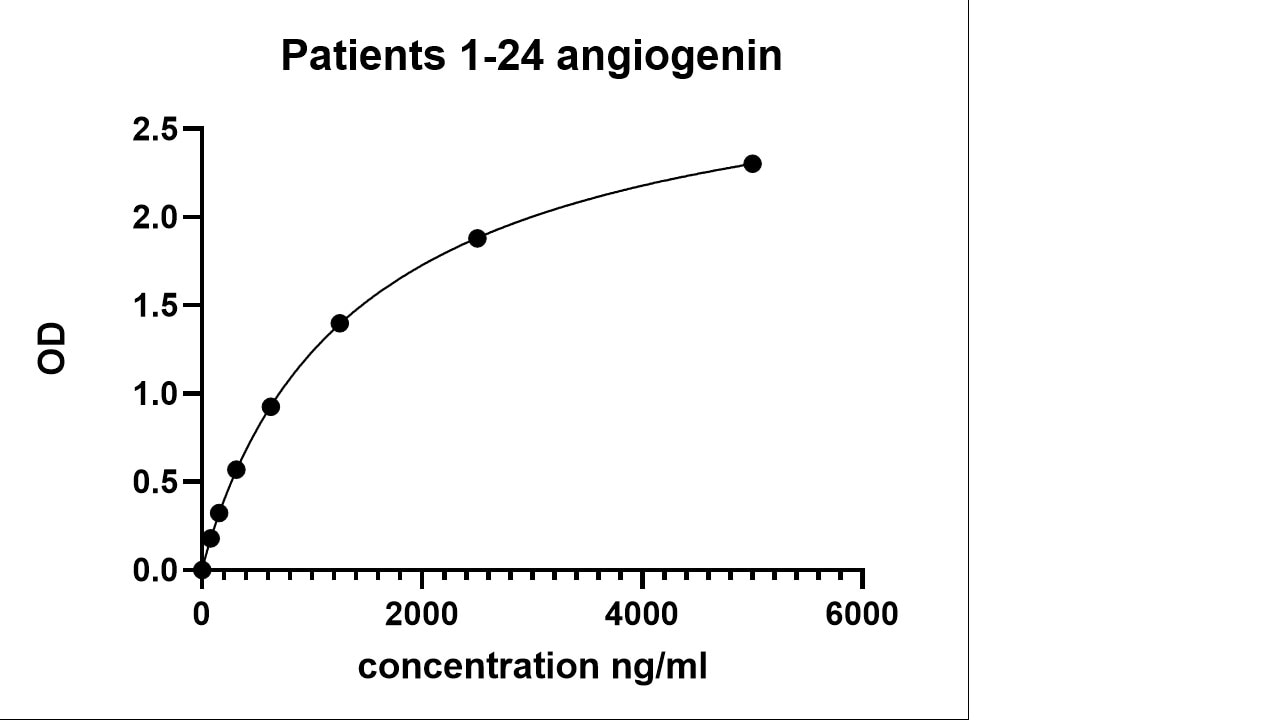 Angiogenin (ANG) is a secreted protein that belongs to the pancreatic ribonuclease family. It was initially purified based on its ability to initiate vascularization in the chicken embryo chorioallantoic membrane from serum-free media conditioned by growth of a human adenocarcinoma cell line HT-29. A number of other tumors, as well as normal cell lines, also secrete Angiogenin. Angiogenin is present in normal human plasma.