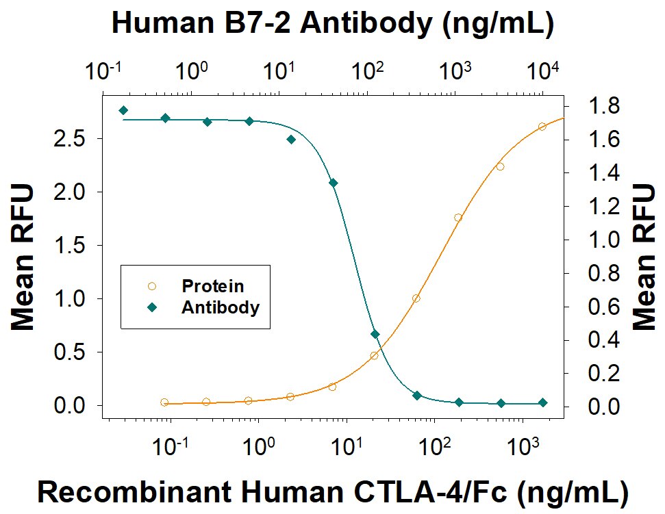 CTLA-4/Fc-tag Binding to B7-2 is Blocked by Human B7-2/CD86 Antibody.