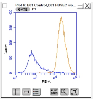 Detection of CD109 in A431 Human Cell Line by Flow Cytometry. A431 human epithelial carcinoma cell line was stained with Human CD109 Antigen Affinity‑purified Polyclonal Antibody (Catalog # AF4385, filled histogram) or isotype control antibody (Catalog # 5-001-A, open histogram), followed by NorthernLights™ 557-conjugated Anti-Sheep IgG Secondary Antibody (Catalog # NL010).