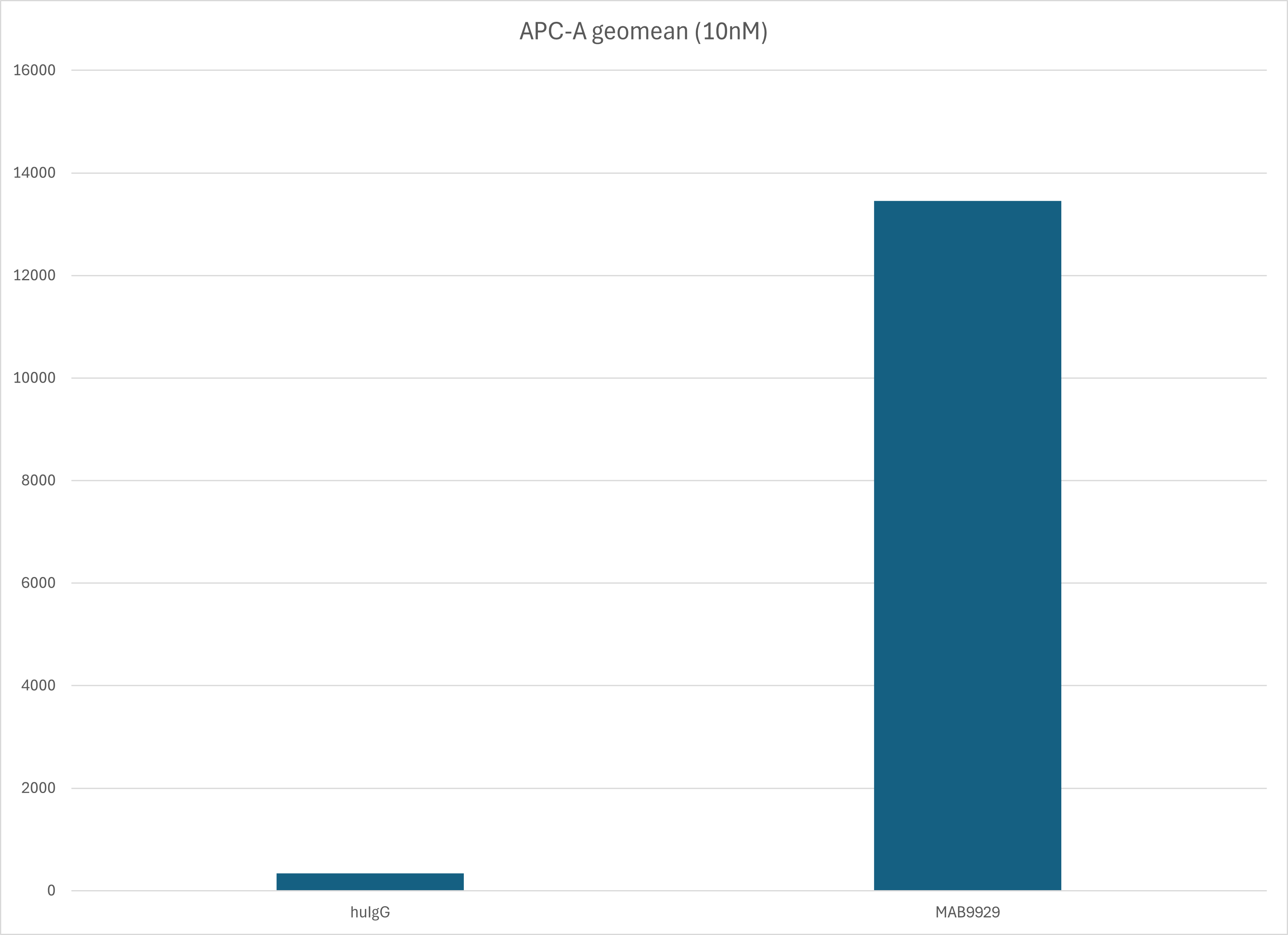 Detection of CD3 in Human Jurkat cell line by Flow Cytometry. Human Jurkat cell line was stained with Human CD3 (Teplizumab Biosimilar) Monoclonal Antibody (Catalog # MAB9929, filled histogram) or Normal Human IgG control antibody (Catalog # 1-001-A, open histogram) followed by APC-conjugated Anti-Human IgG Secondary Antibody (Catalog # F0135). View our protocol for Staining Membrane-associated Proteins.