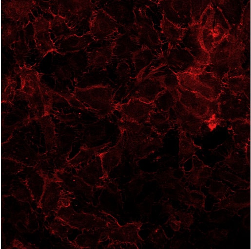CD31/PECAM‑1 in HUVEC Human Cells. CD31/PECAM-1 was detected in immersion fixed HUVEC human umbilical vein endothelial cells using 10 µg/mL Mouse Anti-Human CD31/PECAM-1 Monoclonal Antibody (Catalog # BBA7) for 3 hours at room temperature. Cells were stained with the NorthernLights™ 557-conjugated Anti-Mouse IgG Secondary Antibody (red; NL007) and counterstained with DAPI (blue). View our protocol for Fluorescent ICC Staining of Cells on Coverslips.