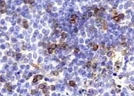 CD43 in Human Tonsil. CD43 was detected in immersion fixed paraffin-embedded sections of human tonsil using Mouse Anti-Human CD43 Monoclonal Antibody (Catalog # MAB20381) at 1.7 µg/mL for 1 hour at room temperature followed by incubation with the Anti-Mouse IgG VisUCyte™ HRP Polymer Antibody (Catalog # VC001). Before incubation with the primary antibody, tissue was subjected to heat-induced epitope retrieval using Antigen Retrieval Reagent-Basic (Catalog # CTS013). Tissue was stained using DAB (brown) and counterstained with hematoxylin (blue). Specific staining was localized to cell surfaces in lymphocytes. View our protocol for IHC Staining with VisUCyte HRP Polymer Detection Reagents.