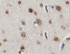 FGF acidic/FGF1 in Human Brain. FGF acidic/FGF1 was detected in immersion fixed paraffin-embedded sections of human brain using Mouse Anti-Human FGF acidic/FGF1 Monoclonal Antibody (Catalog # MAB2321) at 5 µg/mL overnight at 4 °C. Tissue was stained using the Anti-Mouse HRP-DAB Cell & Tissue Staining Kit (brown; Catalog # CTS002) and counterstained with hematoxylin (blue). Specific staining was localized to neuronal cytoplasm. View our protocol for Chromogenic IHC Staining of Paraffin-embedded Tissue Sections.