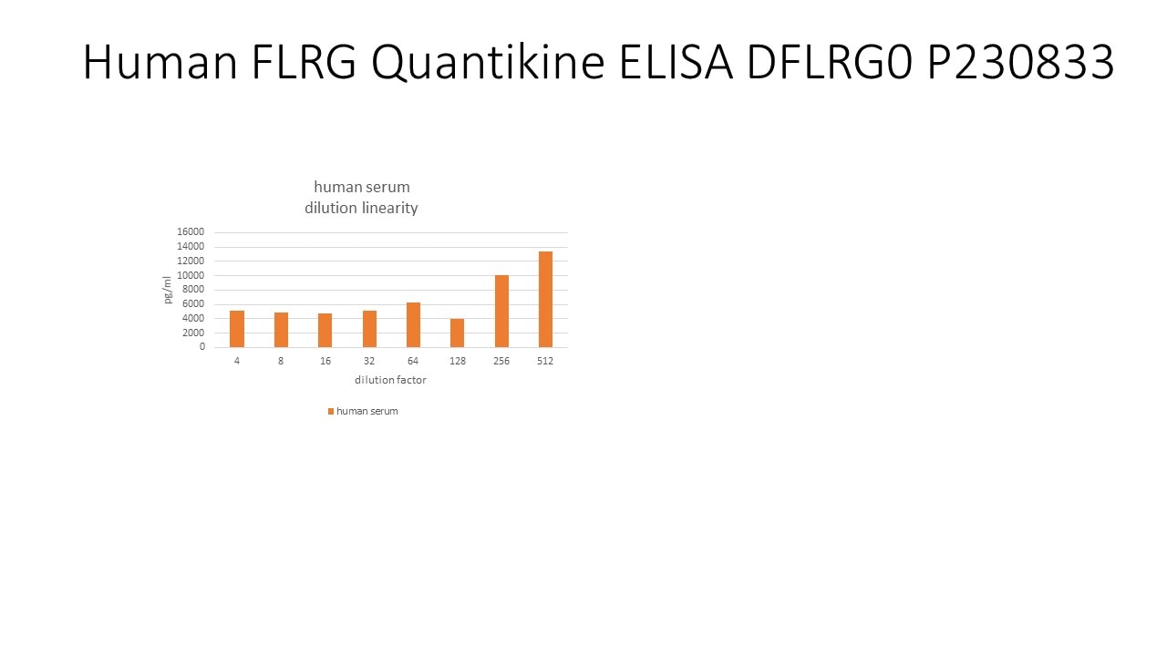 To assess the linearity of the assay, samples containing high concentrations of FLRG were serially diluted with the appropriate Calibrator Diluent to produce samples with values within the dynamic range of the assay.