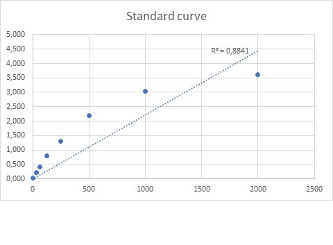 Very good, reliable reasults. Samples diluted 1/20, some needed dilution 1/40 as signal was too strong for the standard curve we applied. It may be ok with just 1/20 if the full standard curve is applied