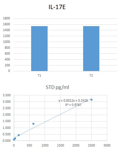 We used this antibody in an in-house ELISA along with pAb (AF1258) and protein (1258-IL-025) to quantify IL-17E in human serum and plasma. This combination detected IL-17E in our samples efficiently.