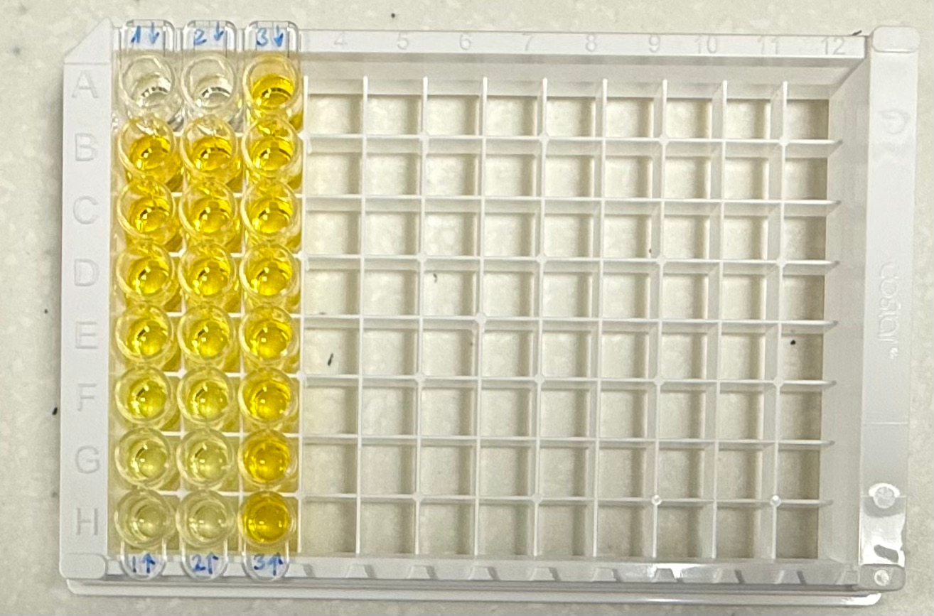 - Add 100 μL of the working dilution of Streptavidin-HRP to each well. Cover the plate and incubate for 20 minutes at room temperature. Avoid placing the plate in direct light.