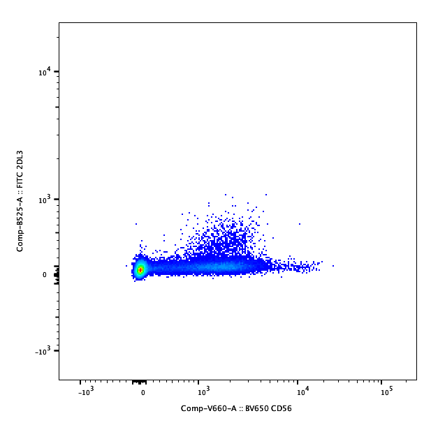 Detection of KIR2DL3/CD158b2 in Human PBMCs by Flow Cytometry. Human peripheral blood mononuclear cells (PBMCs) were stained with Mouse Anti-Human KIR2DL3/CD158b2 Fluorescein-conjugated Monoclonal Antibody (Catalog # FAB2014F) and Mouse Anti-Human NCAM-1/CD56 PE-conjugated Monoclonal Antibody (Catalog # FAB2408P). View our protocol for Staining Membrane-associated Proteins.