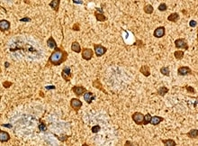 mGluR8 in Human Brain. mGluR8 was detected in immersion fixed paraffin-embedded sections of human brain (hippocampus) using Mouse Anti-Human mGluR8 Monoclonal Antibody (Catalog # MAB5277) at 25 µg/mL overnight at 4 °C. Tissue was stained using the Anti-Mouse HRP-DAB Cell & Tissue Staining Kit (brown; Catalog # CTS002) and counterstained with hematoxylin (blue). View our protocol for Chromogenic IHC Staining of Paraffin-embedded Tissue Sections.