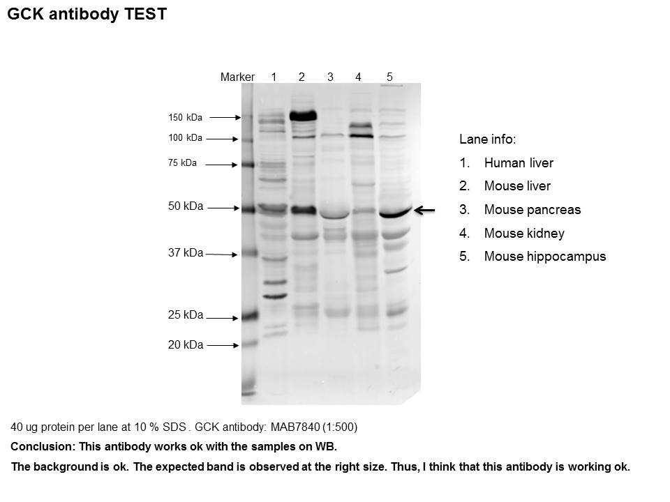 Human/Mouse Glucokinase/GCK Antibody Summary