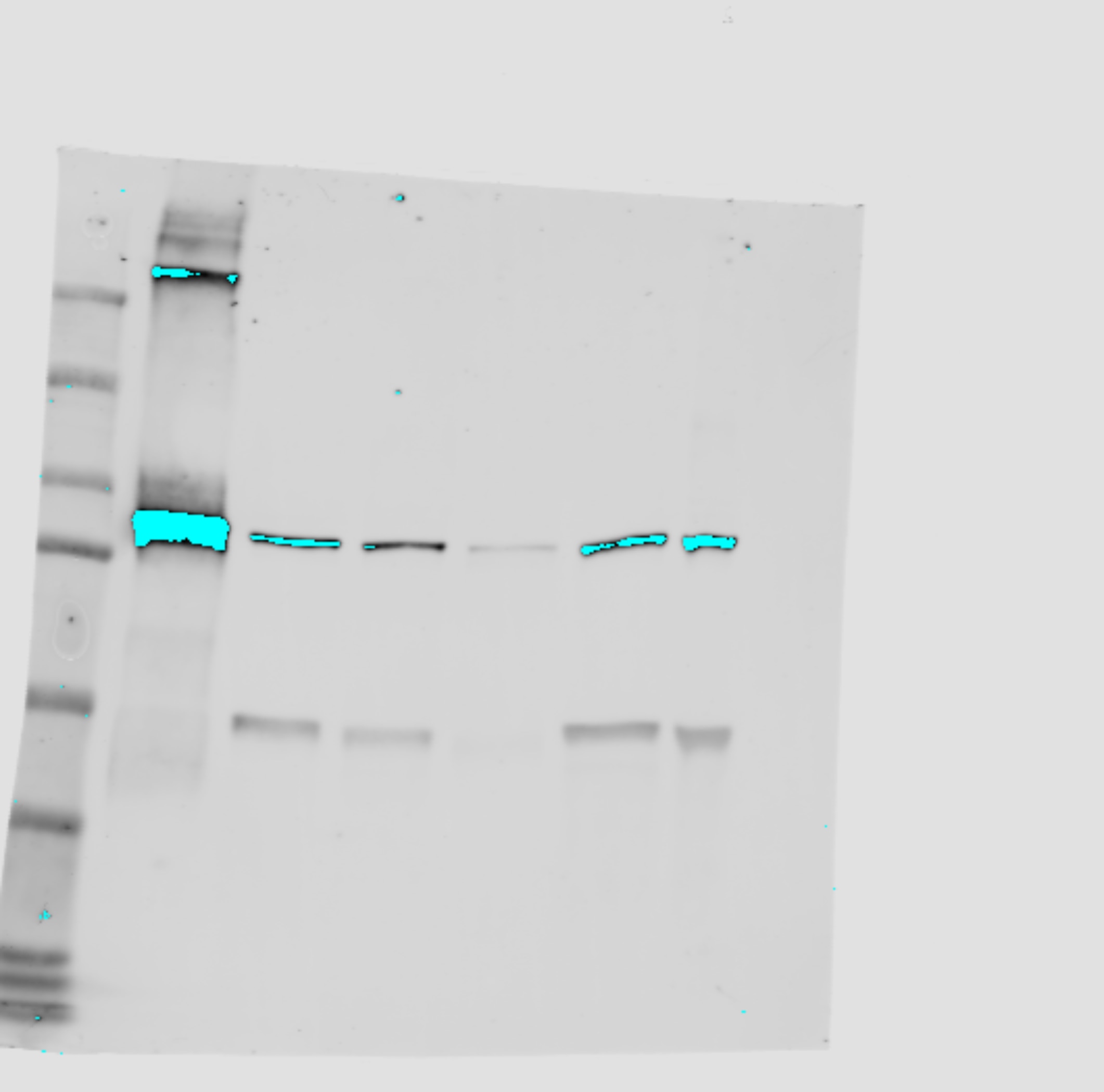Ladder: Precision plus protein standards. Blot is also probed for alpha tubulin at 50KDa.