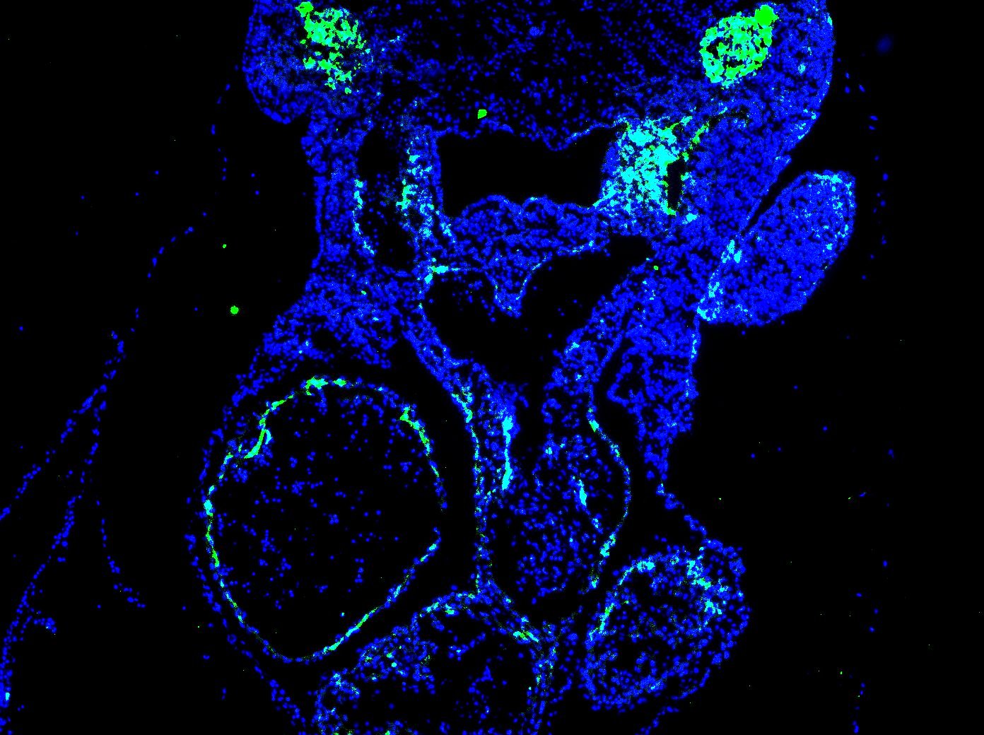 Dilution used - 1:200. The staining was done on an E10.5 mouse transverse section (fixed on 4% PFA overnight) and done using standard IF techniques.