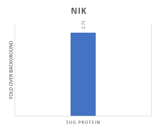 NIK (NF kappa B inducing kinase), also called MAP3K14, is a widely expressed 947 amino acid (aa), ~100 kDa cytoplasmic protein of the MAP kinase family. NIK participates in a non-canonical NFkB signaling cascade in which its activity and expression are elevated by TNF and related ligands. NIK activates IKKa/b, which releases NFkB subunits for translocation to the nucleus. Within the region used as an immunogen, human NIK shares 94% and 95% aa sequence identity with mouse and rat NIK, respectively.