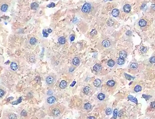 PGC1 alpha in Human Liver Cancer. PGC1 alpha was detected in immersion fixed paraffin-embedded sections of human liver cancer tissue using Mouse Anti-Human PGC1 alpha Monoclonal Antibody (Catalog # MAB10784) at 5 µg/mL for 1 hour at room temperature followed by incubation with the Anti-Mouse IgG VisUCyte™ HRP Polymer Antibody (VC001). Before incubation with the primary antibody, tissue was subjected to heat-induced epitope retrieval using Antigen Retrieval Reagent-Basic (CTS013). Tissue was stained using DAB (brown) and counterstained with hematoxylin (blue). Specific staining was localized to nuclei in hepatocytes. Staining was performed using our protocol for IHC Staining with VisUCyte HRP Polymer Detection Reagents.