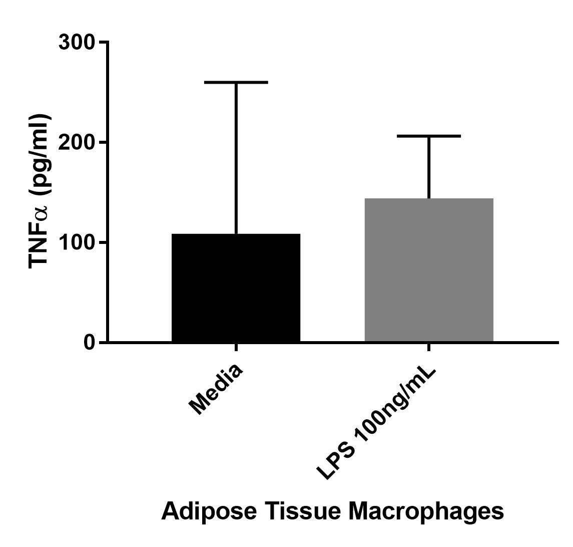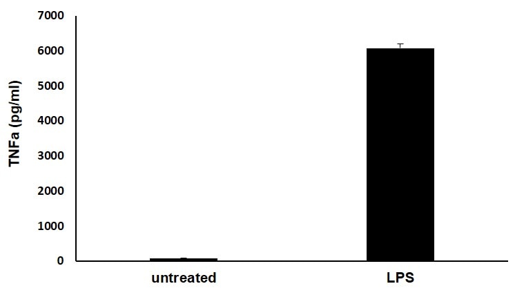 Monocytes were stimulated with LPS (100 ng/ml) for 24 hours. After 24 hours, TNFa was assessed in the supernatant.
