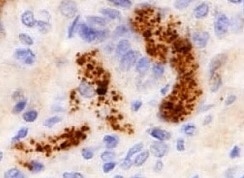 TRIM38 in Human Lymph Node. TRIM38 was detected in immersion fixed paraffin-embedded sections of human lymph node in small intestine using Mouse Anti-Human TRIM38 Monoclonal Antibody (Catalog # MAB9104) at 15 µg/mL overnight at 4 °C. Tissue was stained using the Anti-Mouse HRP-DAB Cell & Tissue Staining Kit (brown; Catalog # CTS002) and counterstained with hematoxylin (blue). Specific staining was localized to cytoplasm in lymphocytes. View our protocol for Chromogenic IHC Staining of Paraffin-embedded Tissue Sections.