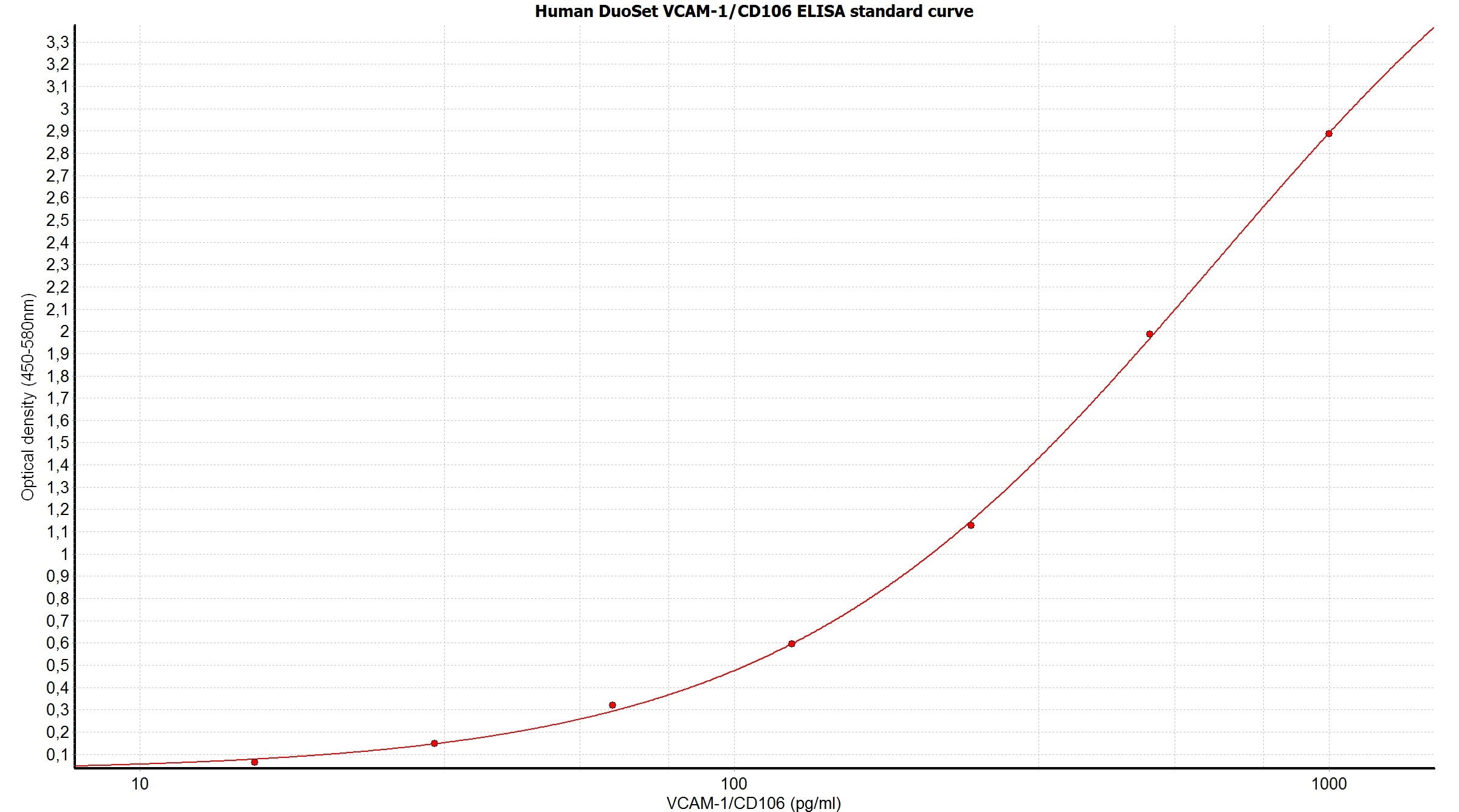 This DuoSet ELISA Development kit contains the basic components required for the development of sandwich ELISAs to measure natural and recombinant human VCAM-1. The suggested diluent is suitable for the analysis of most cell culture supernate samples. Diluents for complex matrices, such as serum and plasma, should be evaluated prior to use in this DuoSet.