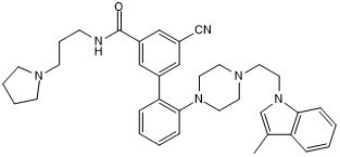 Chemical Name: 3-Cyano-5-[2-[4-[2-(3-methyl-1H-indol-1-yl)ethyl]piperazin-1-yl]phenyl]-N-[3-(pyrrolidin-1-yl)propyl]benzamide