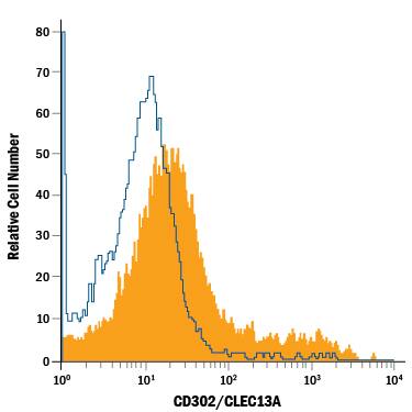 CD302, also known as CLEC13A and DCL-1, is a 35 kDa type I transmembrane glycoprotein in the C-type lectin family. CD302 is expressed on monocytes, macrophages, dendritic cells, and granulocytes. It contains one carbohydrate binding domain in its extracellular region and can mediate antigen uptake. In human Hodgkin’s disease, a fusion protein containing portions of CD302 and the ECD of DEC-205 is expressed on Reed-Sternberg cells. Within the ECD, mouse CD302 shares 82% and 92% aa sequence identity with human and rat CD302, respectively.