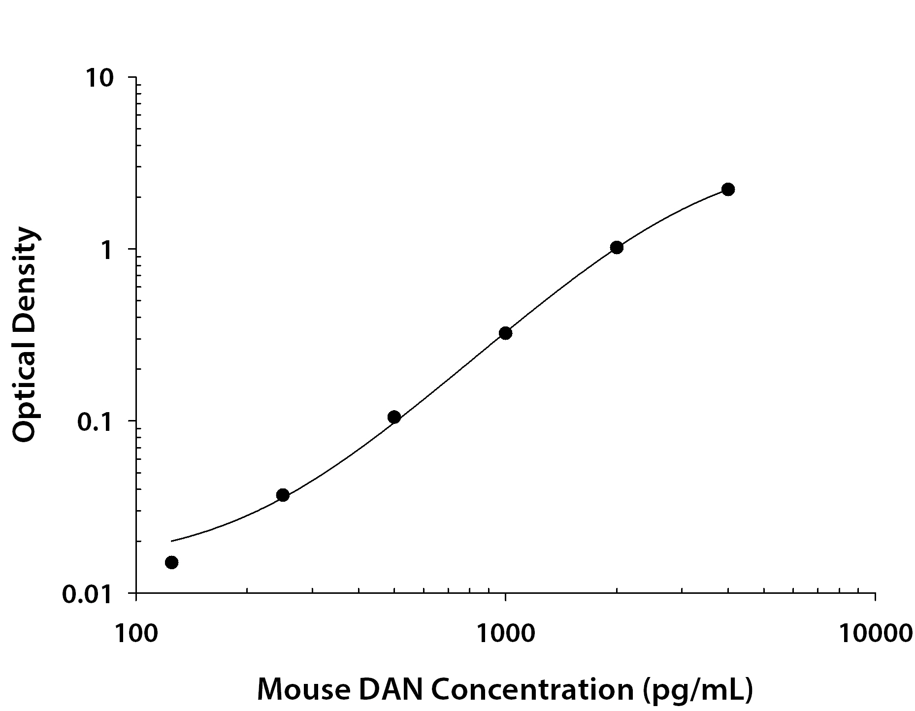 This DuoSet ELISA Development kit contains the basic components required for the development of sandwich ELISAs to measure natural and recombinant mouse DAN. The suggested diluent is suitable for the analysis of most cell culture supernate samples. Diluents for complex matrices, such as serum and plasma, should be evaluated prior to use in this DuoSet.