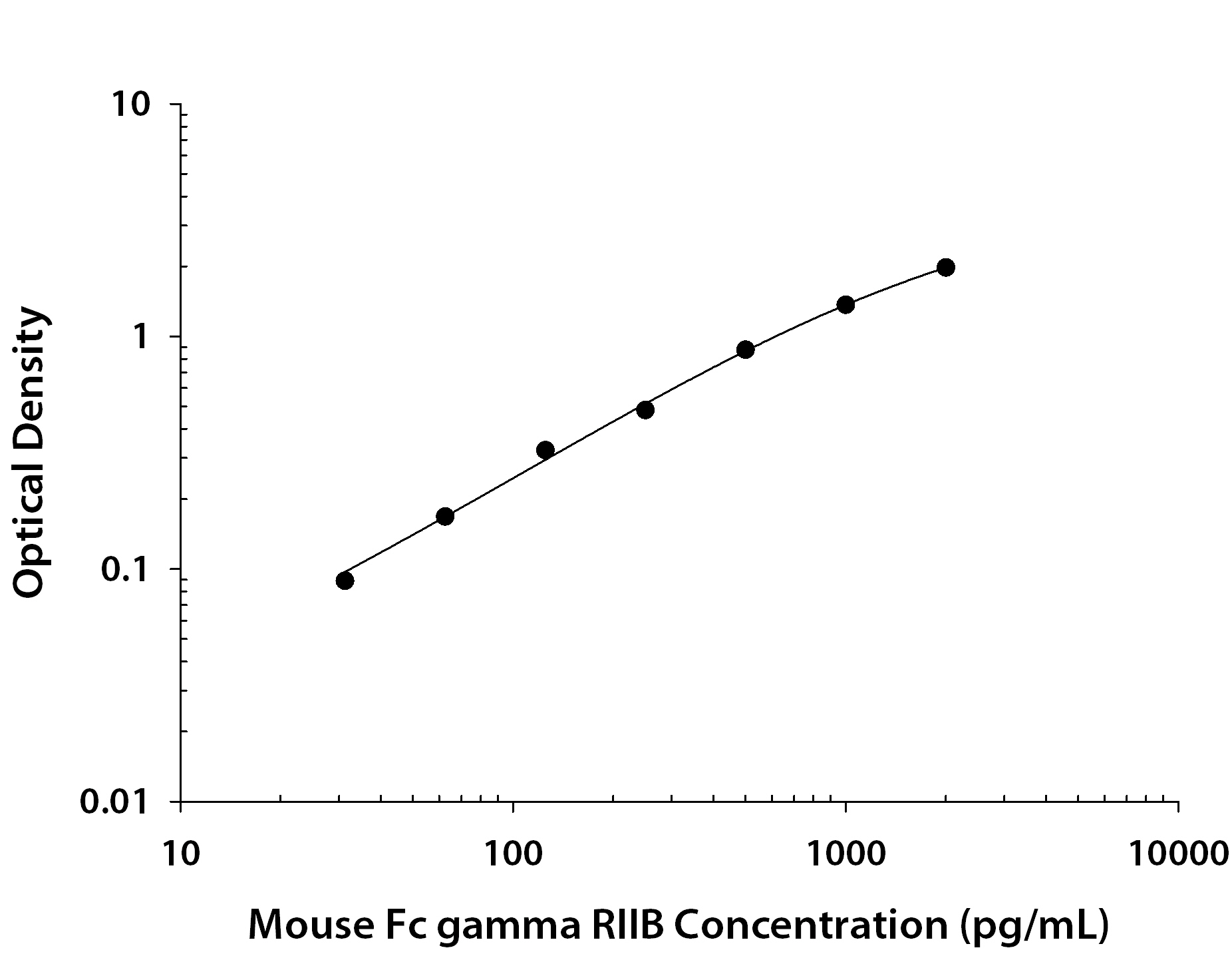 This DuoSet ELISA Development kit contains the basic components required for the development of sandwich ELISAs to measure natural and recombinant mouse Fcgamma RIIB/CD32b. The suggested diluent is suitable for the analysis of most cell culture supernate samples. Diluents for complex matrices, such as serum and plasma, should be evaluated prior to use in this DuoSet.
