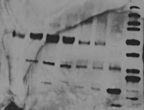 Only the last bands at bottom is galectin-1, the rest bands are IgG.