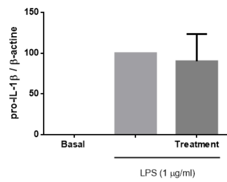 Detection of Mouse IL-1 beta/IL-1F2 by Western Blot Quercetin inhibits NLRP3 and AIM2 Inflammasomes.LPS (500 ng/ml)-primed BMDM were treated with the indicated flavonoids and concentrations or vehicle (DMSO 0.01%), then stimulated with (A) 5 mM ATP (B) 10 μM Nigericin (C) 130 μg/ml Alum or (D) 400 ng/ml Poly (dA:dT) 30 minutes after treatment. (A–D) IL-1 beta and (E) TNF-alpha concentration in the culture supernatant were measured by ELISA. (B,F,G) LPS-primed BMDM were stimulated with Nigericin treated with quercetin 30 minutes before secondary stimulation. Supernatants and Lysate of BMDM were analyzed by immunoblotting. Cells were stained with FLICA and Caspase-1 activation was determined by FLICA positivity. Data shown are representative of two or more independent experiments (means ± SD) *p < 0.05, **p < 0.01, ***p < 0.001. Image collected and cropped by CiteAb from the following publication (https://pubmed.ncbi.nlm.nih.gov/28148962), licensed under a CC-BY license. Not internally tested by R&D Systems.