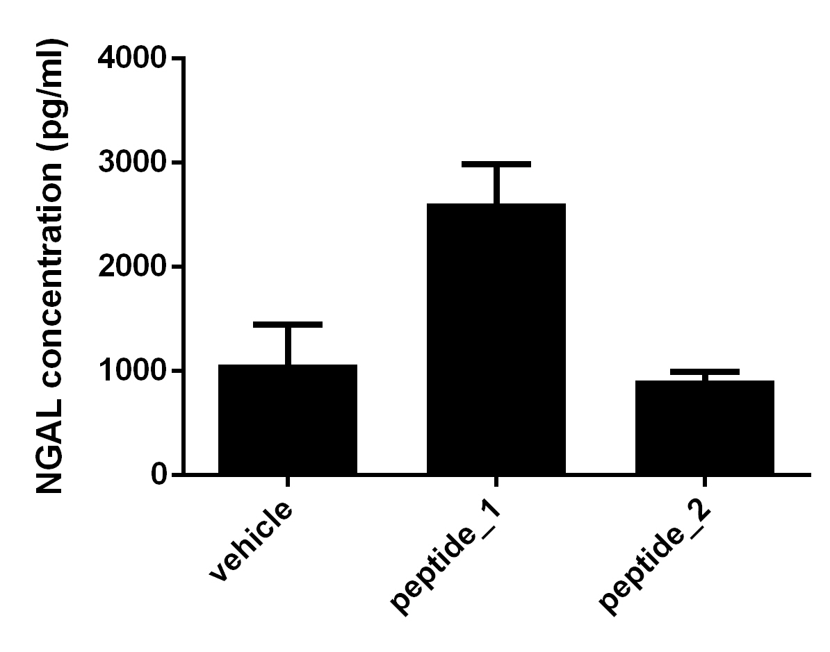 Two mouse brains and kidneys were homogenized and seeded in RPMI 1640 supplemented with 10% fetal bovine serum, 5 μM beta -mercaptoethanol, 2 mM L-glutamine, 100 U/mL of penicillin, and 100 μg/mL of streptomycin sulfate. The resulting supernates were either untreated or stimulated with 1 μg/mL of LPS for 3 days. Aliquots of the cell culture supernates were removed and assayed for levels of mouse Lipocalin-2.