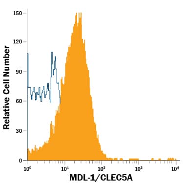 Detects mouse MDL-1/CLEC5A. In ELISAs, approximately 50% cross-reactivity with recombinant human MDL‑1 is observed.