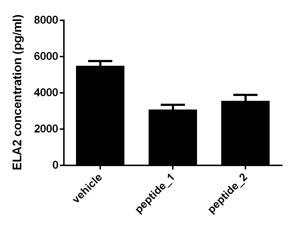 Neutrophil Elastase (ELA2), also known as polymorphonuclear leukocyte elastase, is a serine protease belonging to the chymotrypsin family. Located primarily in the azurophil granules of polymorphonuclear leukocytes, ELA2 function results in the degradation of many extracellular matrix macromolecules. Alpha-1 Antitrypsin (Serpin A1) and secretory leukocyte protease inhibitor (SLPI) have been shown to inhibit ELA2 activity. ELA2 may be involved in lung emphysema, cystic fibrosis, the adult respiratory distress syndrome (ARDS), rheumatoid arthritis, tumor invasion and infectious diseases.