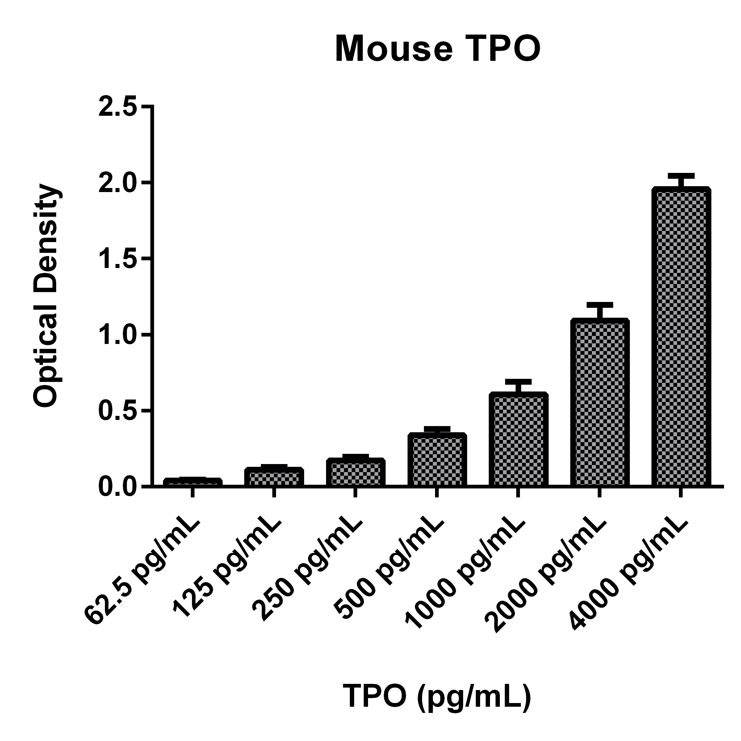 The Quantikine Mouse Tpo Immunoassay is a 4.5 hour solid phase ELISA designed to measure Tpo in cell culture supernates, serum, and plasma. It contains recombinant mouse Tpo and antibodies raised against the recombinant factor. This immunoassay has been shown to quantitate the recombinant factor accurately. Results obtained using natural mouse Tpo showed dose-response curves that were parallel to the standard curves obtained using the recombinant Quantikine kit standards. These results indicate that this kit can be used to determine relative mass values for natural mouse Tpo.