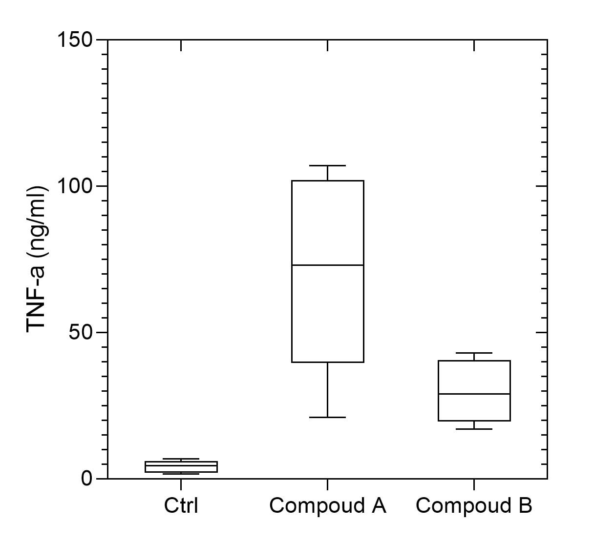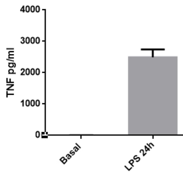 We tested TNFa production in culture supernatant of mouse macrophages induced by Staphylococcus aureus (SA) lipoprotein after 4 h treatment. As expected, SA lipoprotein induces significant production of TNFa.