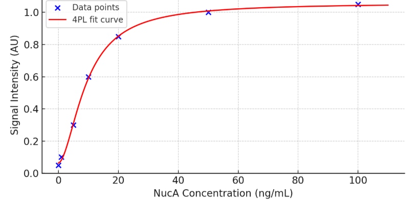 NucA Nuclease Antibody binding signal versus NucA protein concentration