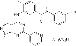 Chemical Name: 4-Methyl-3-[[1-methyl-6-(3-pyridinyl)-1H-pyrazolo[3,4-d]pyrimidin-4-yl]amino]-N-[3-(trifluoromethyl)phenyl]benzamide trifluoroacetate