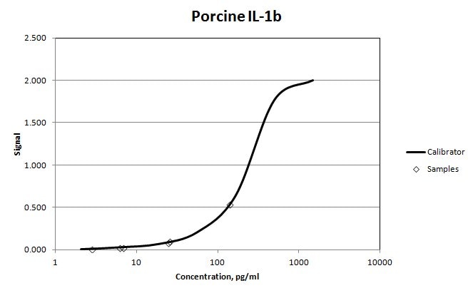 We used MAB6911 as the capture antibody for Porcine IL-1b in a sandwich ELISA. Biotinylated AF681 was used as the detection antibody. The antigen standard was 681-PI. We were able to quantify serum and plasma samples.