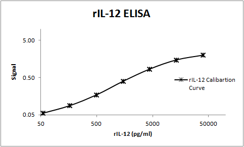 Interleukin 12 (IL-12) is the founding member of the IL-12 family of heterodimeric cytokines, which have important immunological functions. IL-12 is composed of two disulfide-linked subunits of 35 kDa and 40 kDa, respectively. The 35 kDa subunit (p35) is an alpha -helical protein homologous to IL-6 and G‑CSF. The 40 kDa subunit (p40) contains one fibronectin type III and one Ig C2-like domain, and has a high degree of structural homology to type I cytokine receptors. Whereas p35 subunit is unique to IL-12, the p40 subunit is also utilized in IL-23. Mature rat p35 is a 194 amino acids (aa) protein that is secreted as a heterodimer linked to p40. It contains three potential N-linked glycosylation sites and shares 86%, and 58% aa sequence identity with mouse and human p35, respectively. Mature rat p40 contains 313 aa and can exist in multiple forms, including monomer, homodimer, heterodimer linked to p19 (forming IL-23), and heterodimer linked to p35 (forming IL-12). Mature rat p40 shows 92% and 66% aa sequence identity to mouse and human p40, respectively. Cells known to produce IL-12 include macrophages, dendritic cells, monocytes, Langerhans cells, neutrophils, and keratinocytes. The activities of IL-12 are mediated by the receptor complex composed of two type I transmembrane proteins: a 100 kDa ligand-binding subunit (IL‑12 R beta 1) and a 130 kDa signal transducing subunit (IL‑12 R beta 2). IL‑12 facilitates hematopoietic stem cell proliferation, induces NK cell proliferation, and potentiates the expansion and late activation of Th1 CD4+ T cells (1-4).
